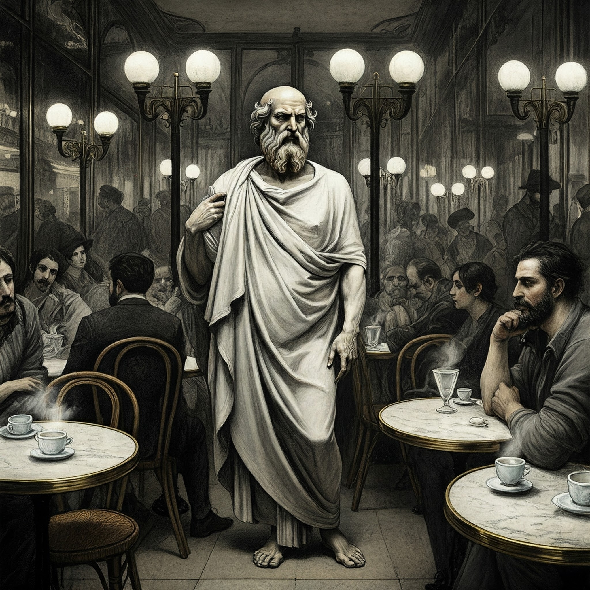 Prólogo. El tiempo, para la mayoría, es una línea recta, un río que fluye sin cesar desde el pasado hacia un futuro desconocido. Pero, ¿qué pasaría si la historia no fuera un camino, sino un laberinto? ¿Y si las mentes más brillantes de todas las épocas no estuvieran enterradas en el polvo de sus siglos, sino que estuvieran esperando, con una taza de café en la mano, para unirse a un debate que abarca la existencia misma?