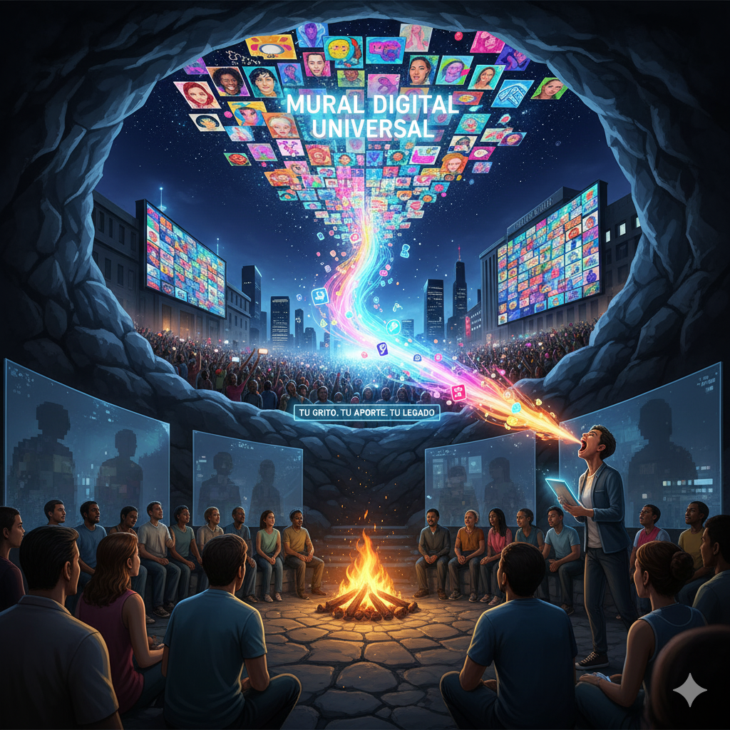 El Mural Digital Universal no es solo un lienzo para la expresión; es una usina de contenidos consciente en constante ebullición. Cada «grito consciente» de nuestros Muralistas —cada imagen y cada texto que suben— es la chispa que enciende una explosión de narrativas, ideas y reflexiones.