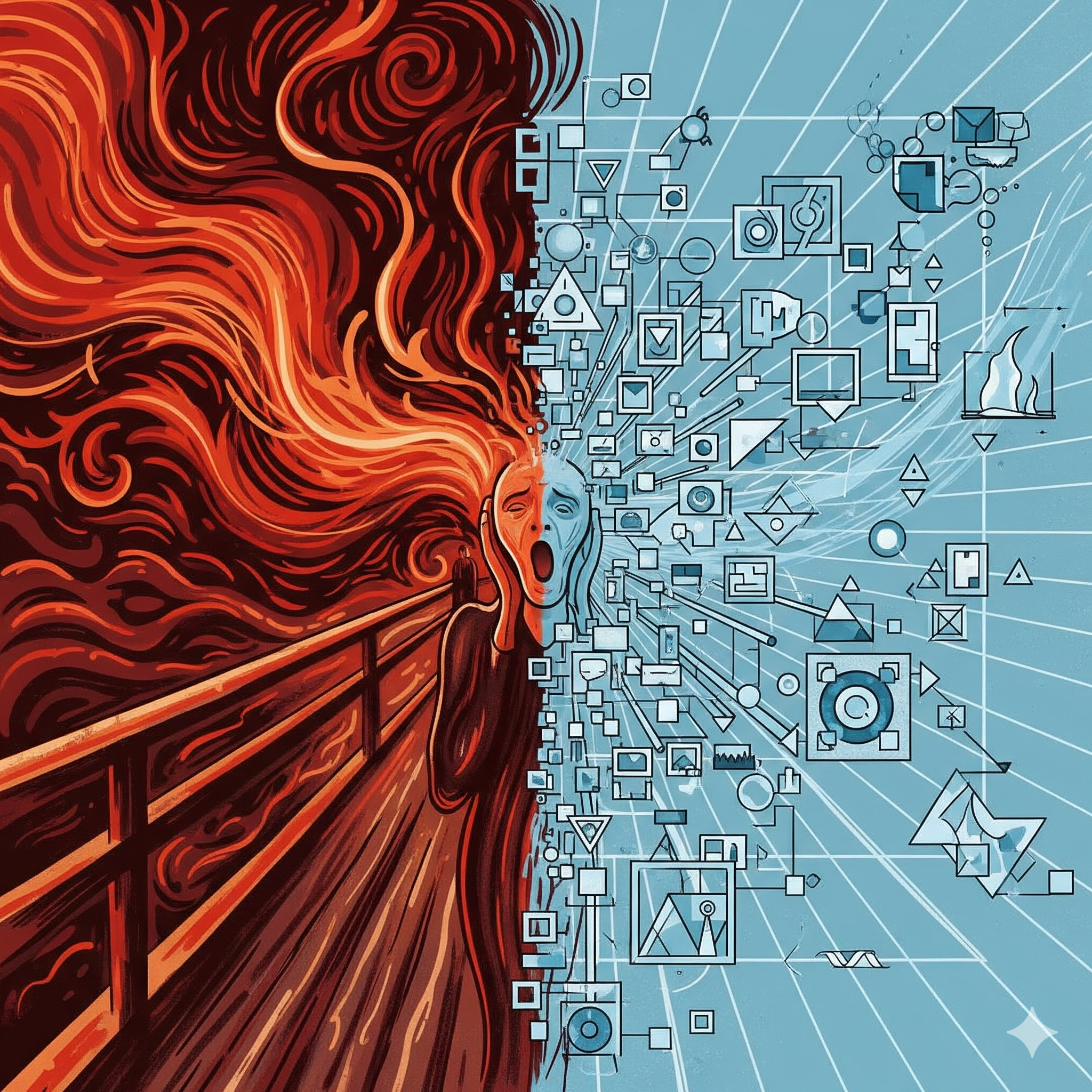 Como bien muestra la imagen del «hombrecillo de Munch» emulando el grito, la tecnología por sí sola carece del alma que impulsa el verdadero cambio.