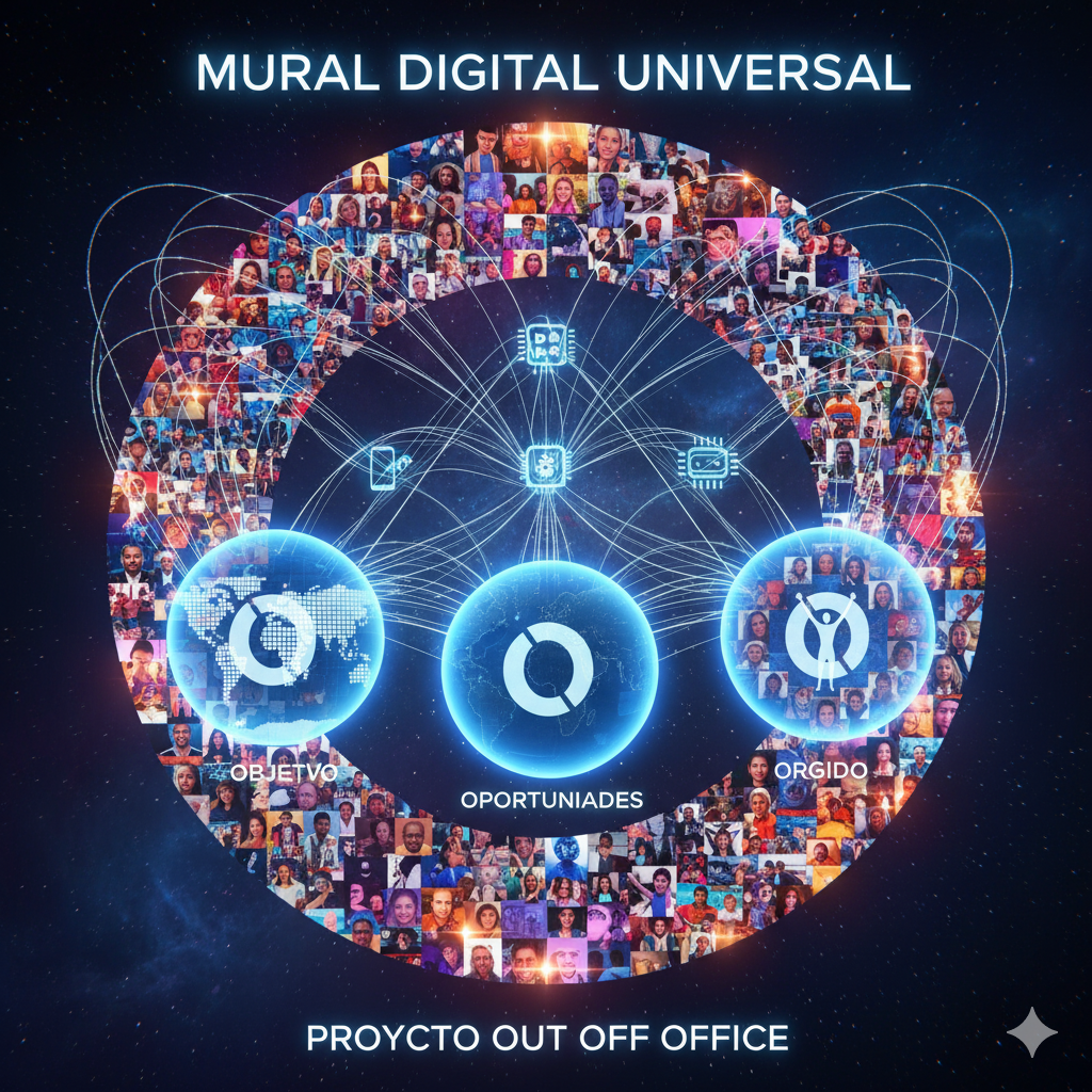 El Mural Out Of Office es la respuesta a esa pregunta. Nos invita a un nuevo desafío: construir el Mural Digital Universal no por accidente, sino por elección deliberada. Cada «grito consciente», cada imagen y texto, es una pieza de este rompecabezas global. Es una obra co-creada por la humanidad, con el propósito explícito de manifestar nuestra visión para un mundo mejor.